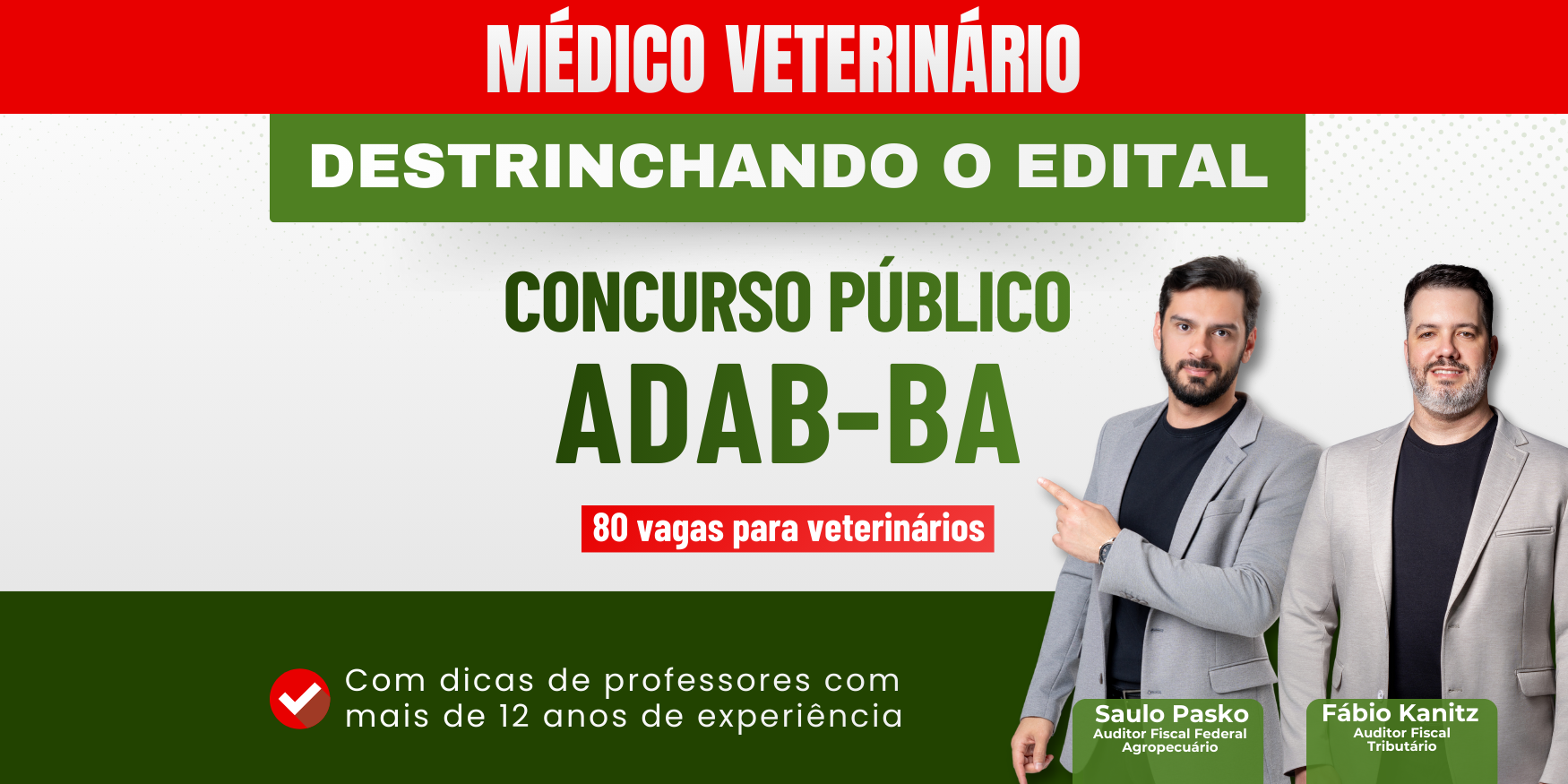 O tão aguardado edital da ADAB BA já foi publicado e traz uma excelente oportunidade para médicos veterinários: são 80 vagas disponíveis.